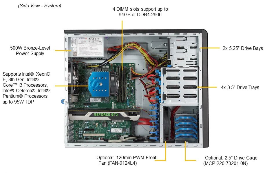 • Single socket H4 (LGA 1151) supports Intel® Xeon® processor E-2100, 8th Gen. Intel® Core™ i3 Processors, Intel® Celeron®, Intel® Pentium®