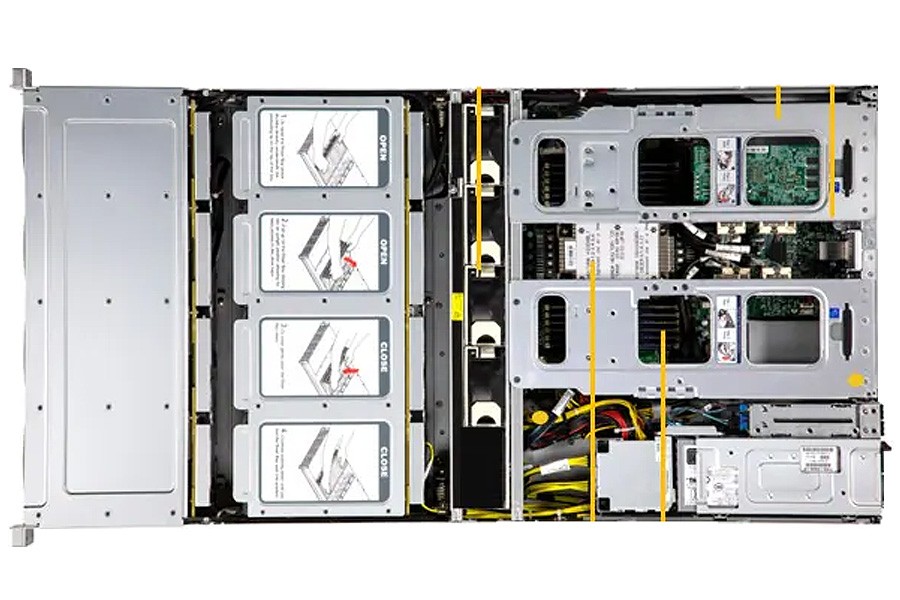 Default: Total 26 bay(s) 12 front hot-swap 3.5" SAS/SATA drive bay(s) 12 top-loading hot-swap 3.5" SAS/SATA drive bay(s) 2 rear hot-swap 2.5" SATA drive bay(s) Option A: Total 28 bay(s) 12 front hot-swap 3.5" SAS/SATA drive bay(s) 12 top-loading fixed 3.5" SAS/SATA drive bay(s) 2 rear hot-swap 2.5" SATA drive bay(s) 2 rear hot-swap 2.5" NVMe drive bay(s) Option B: Total 30 bay(s) 12 front hot-swap 3.5" SAS/SATA drive bay(s) 12 top-loading hot-swap 3.5" SAS/SATA drive bay(s) 4 rear hot-swap 2.5" NVMe drive bay(s) 2 rear hot-swap 2.5" SATA drive bay(s) M.2: 2 M.2 NVMe slot(s) (M-key 2280/22110) |