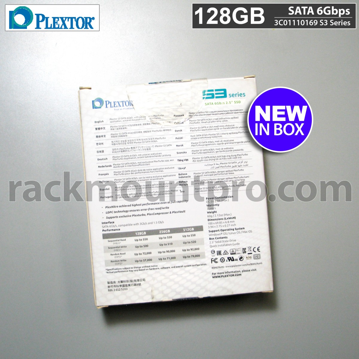 Plextor 3C01110169 S3 Series 128GB SATA 6Gbps 2.5" SSD NEW ( 1 Pcs in Stock)